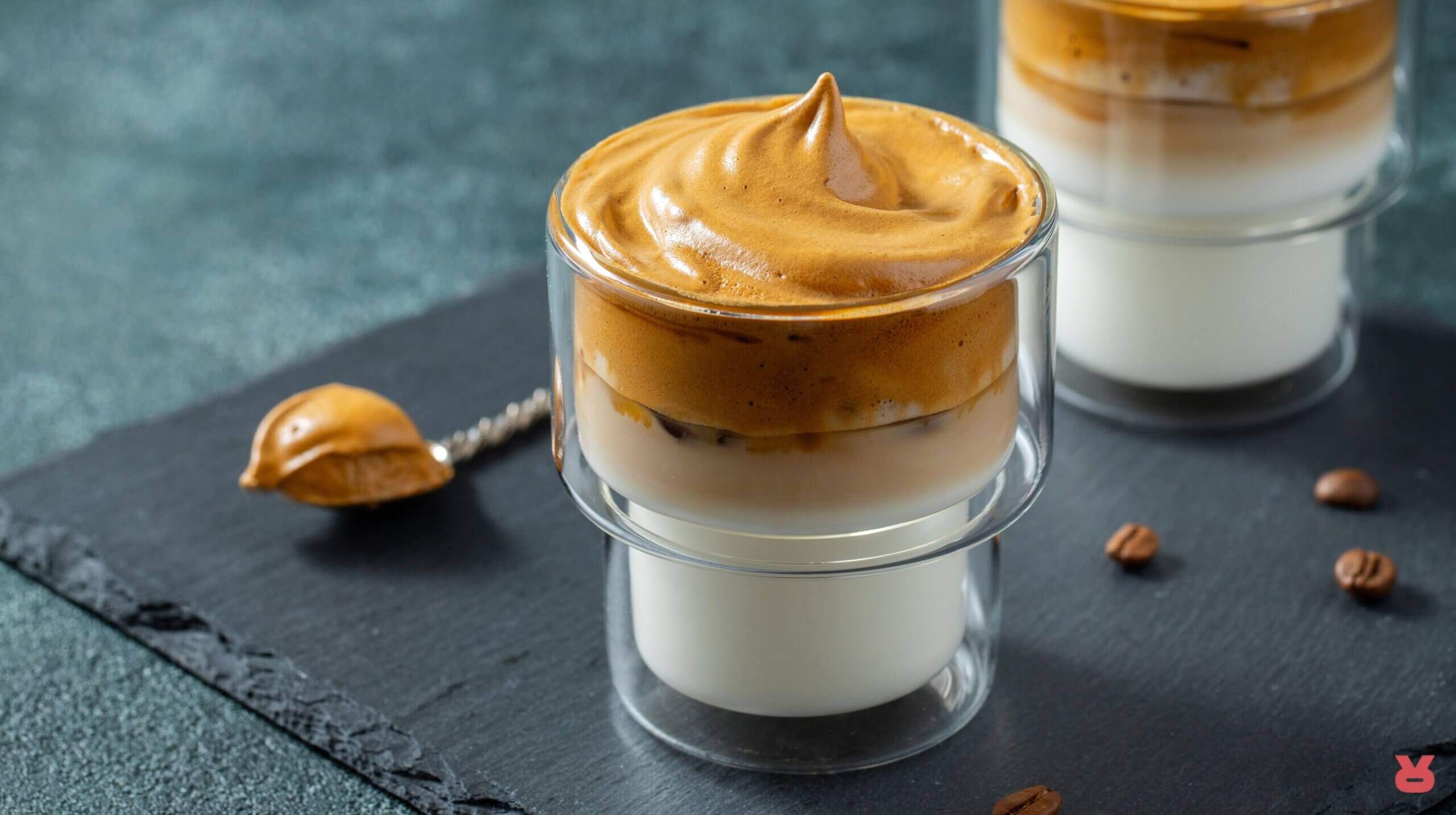 Αυτός ο viral καφές με την εντυπωσιακή εμφάνιση και την αφράτη υφή κέρδισε τις καρδιές μας με την πρώτη ματιά. Η μαγεία του κρύβεται στο χτύπημα: στιγμιαίος καφές, ζάχαρη και λίγη ζεστό νερό χτυπιούνται (πολύ!) μέχρι να δημιουργηθεί ένας παχύρρευστος, αφράτος αφρός. Το μείγμα αυτό τοποθετείται πάνω από παγωμένο γάλα και voilà, έχεις ένα ρόφημα που μοιάζει με επιδόρπιο αλλά σε ξυπνάει σαν καφές. Δοκίμασέ το με φυτικό γάλα καρύδας ή φουντουκιού για πιο ιδιαίτερη γεύση.